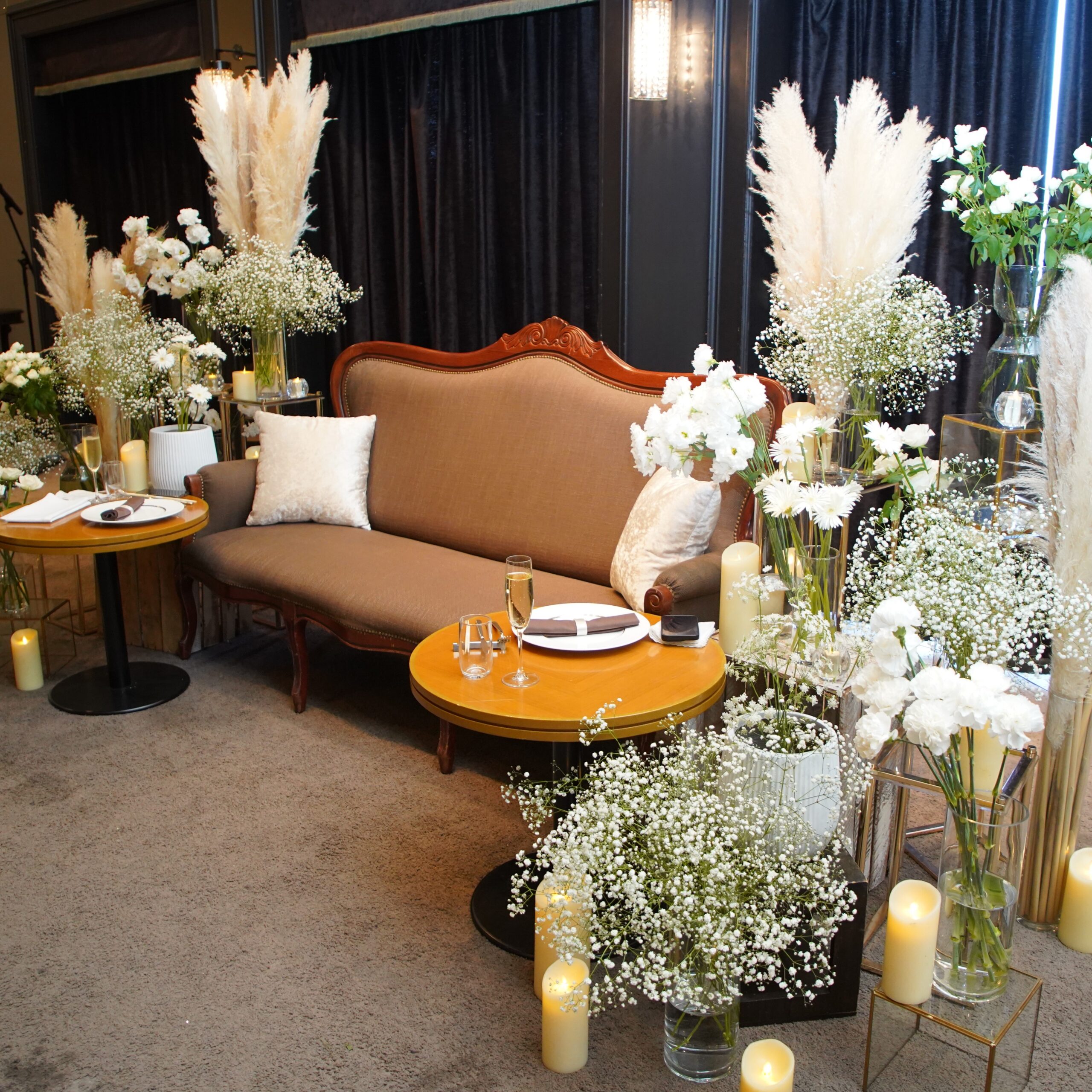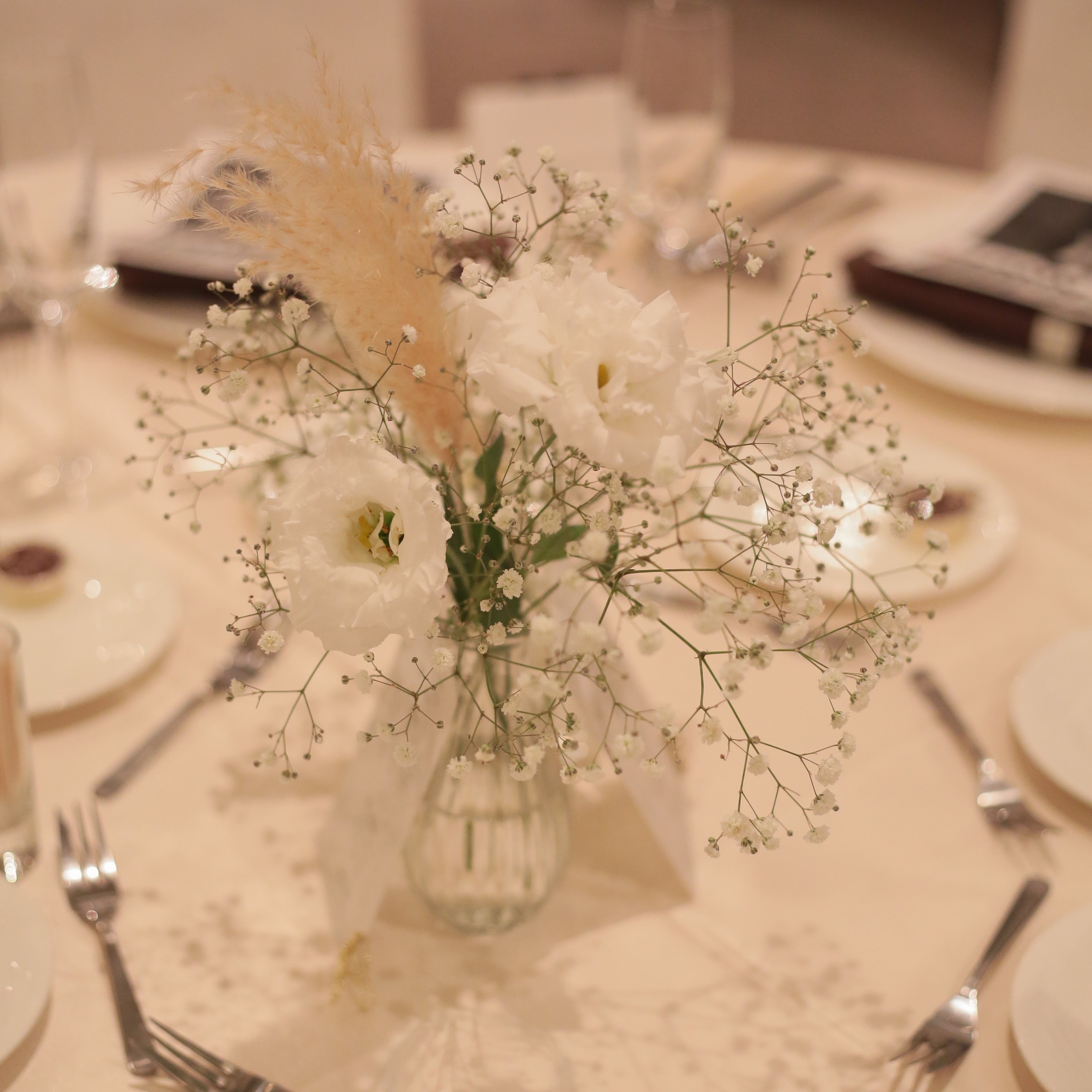 会場コーディネートは、ホワイトをメインにシンプルに大人かわいく